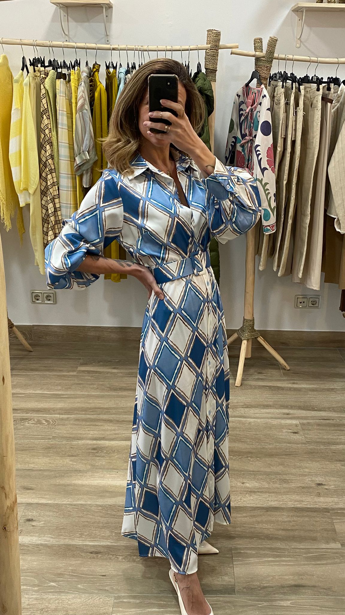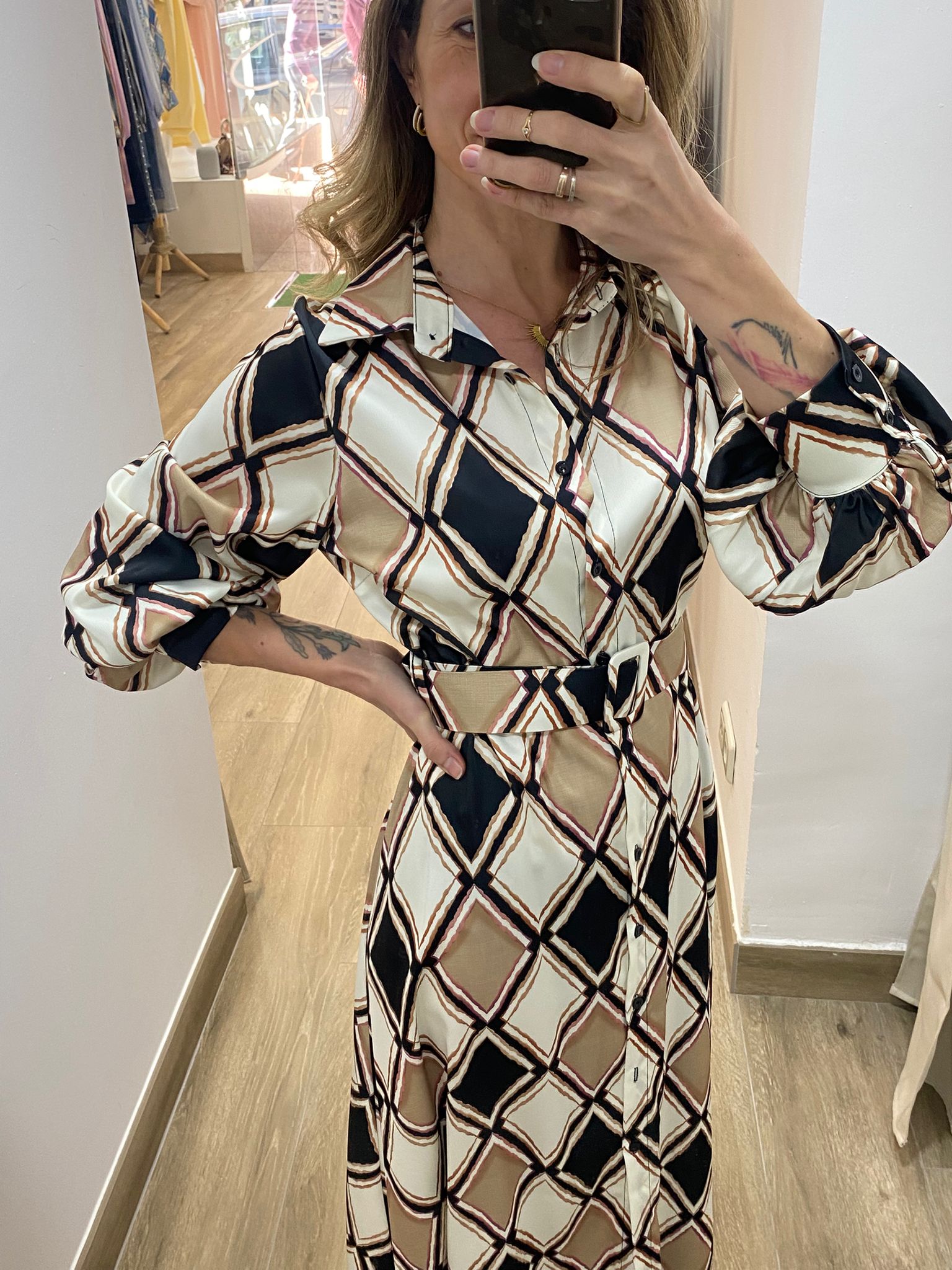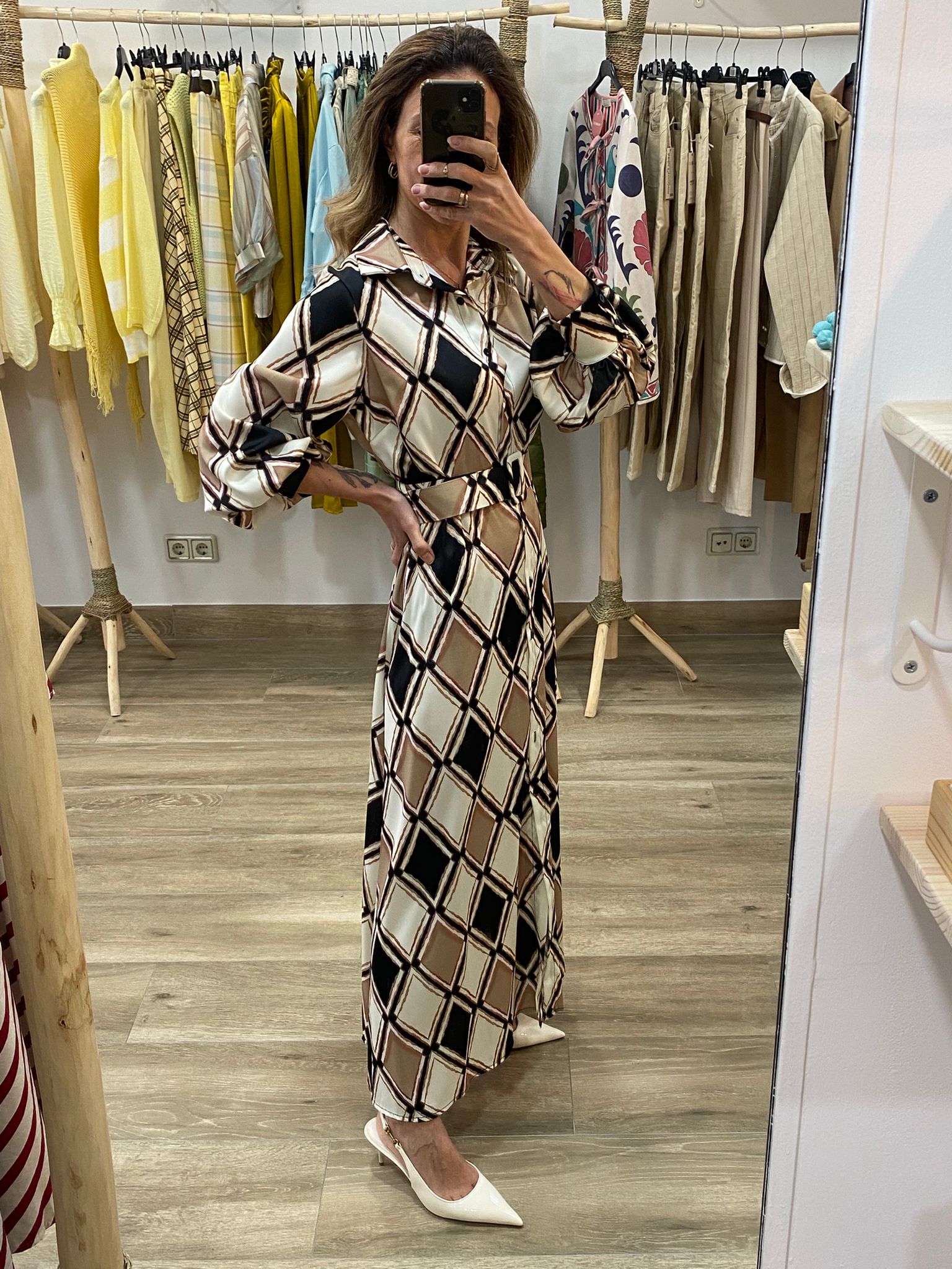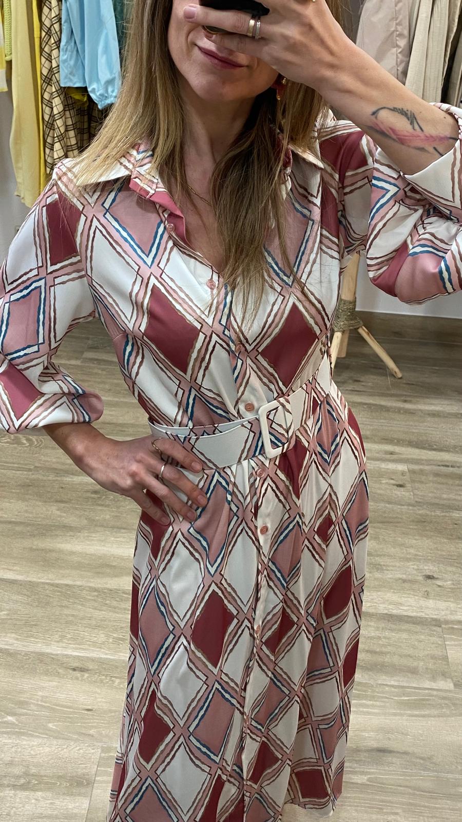 Vestido suelto que se adapta al cuerpo gracias al cinturón, estilizando sin marcar en exceso. Muy cómodo y favorecedor.