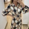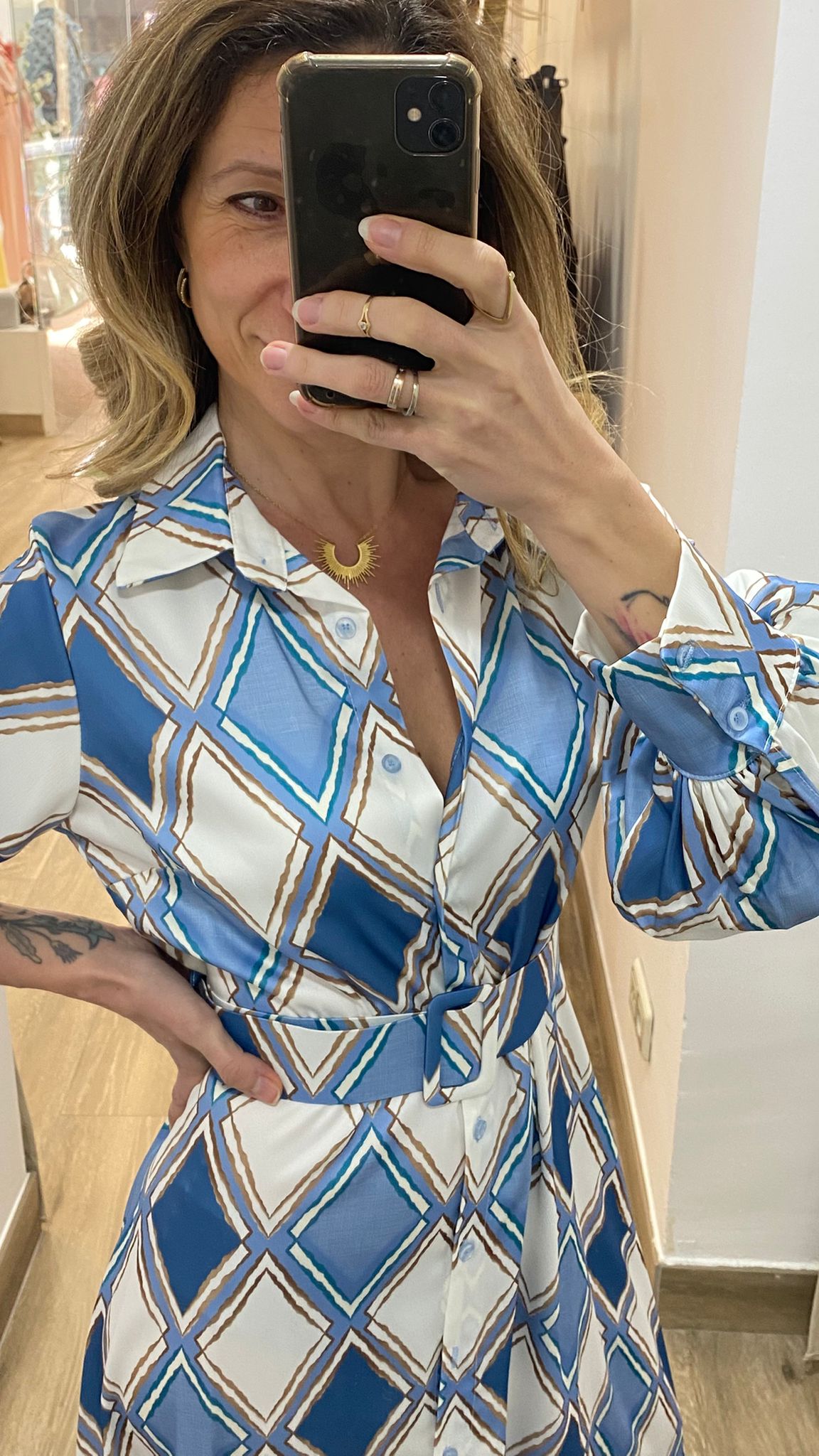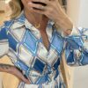 - Estampado geométrico en tonos AZUL, ROSA y MARRON